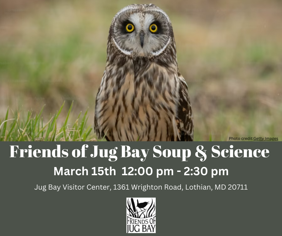 Join the Friends of Jug Bay on Sunday afternoon March 15th for our Soup and Science series. From noon to 1 pm enjoy homemade soup and fresh bread, and catch up with friends and colleagues. Then sit back with dessert and enjoy listening to our guest speaker. Ages 16+. Free to FOJB Members and Active Military, $8 per vehicle for non-members (paid at the park). Space is limited for this event and registration is required. Registration opens to FOJB member first and will open to the public on March 5th. To join FOJB please go to https://jugbay.org/support/